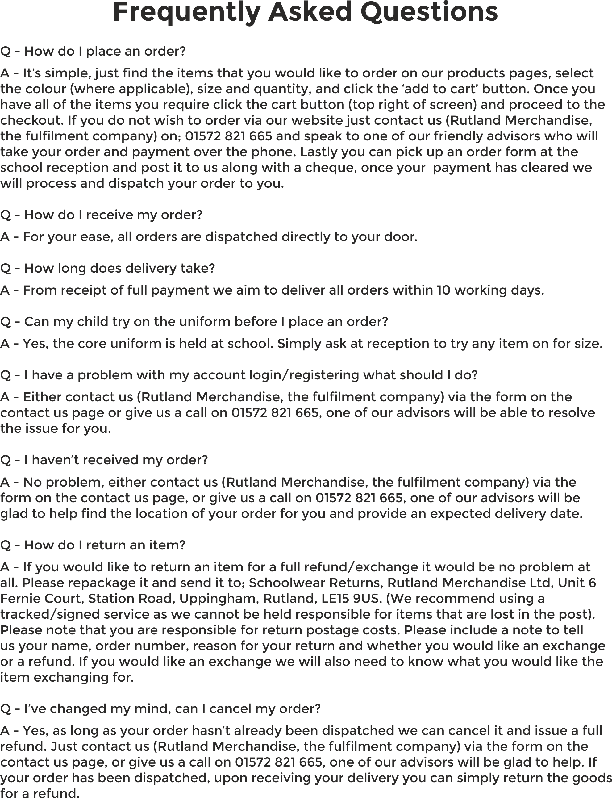 Call our fulfilment team 01572 821665